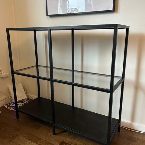 Fina hyllor med glas skivor. Säljs billigt pga flytt.