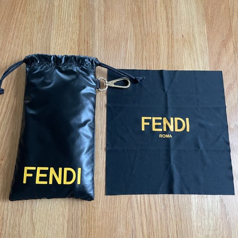 Vit påse med svart text, svarta större, begagnad, kan skickas mot frakt