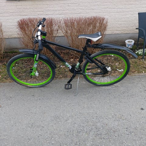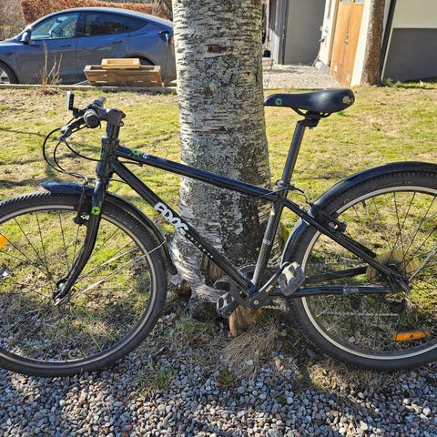 Barncykel med 26" hjul i svart färg. Utrustad med växlar och handbromsar fram och bak. Passar äldre barn eller ungdomar som behöver en cykel för vardagscykling och enklare turer på blandat underlag.