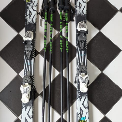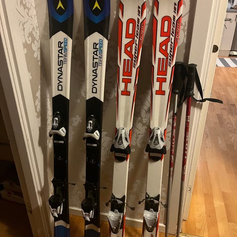 Head alpinskidor med bindningar och Rossignol pjäxor