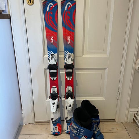 Head alpinskidor med bindningar samt Rossignol alpina pjäxor.