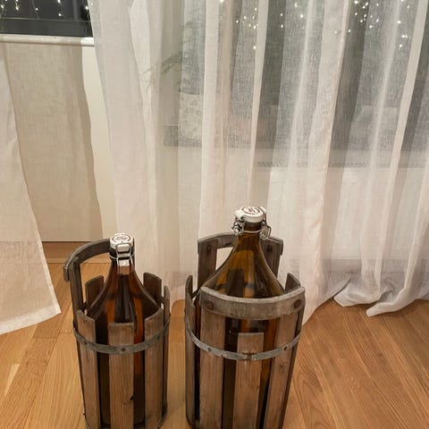 Flaskorna har patentkorkar i fullt fungerande skick (om man byter gummiringarna). Priset är för paret.