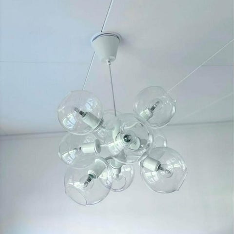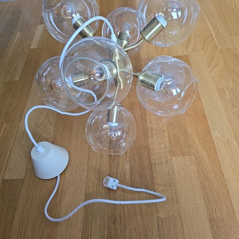 Elegant taklampa, Tage 50, stål/klarglas, inköpt i somras. Säljes p g a flytt.
