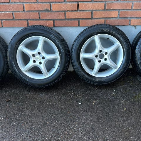 Peugeot orginal alufälgar 15",4/108,65,1,ET 18, med helt nya däck 195/45-15, Aplus 609,fina fälgar,nya centrum kåpor finns, passar på 206,205,105,107 mindre Peugeot bilar,även Citroen, säljes pga byte till 16". POK.