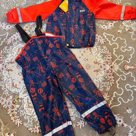 Helly Hansen regnställ storlek 110. Saknar fothällorna, annars i bra skick.