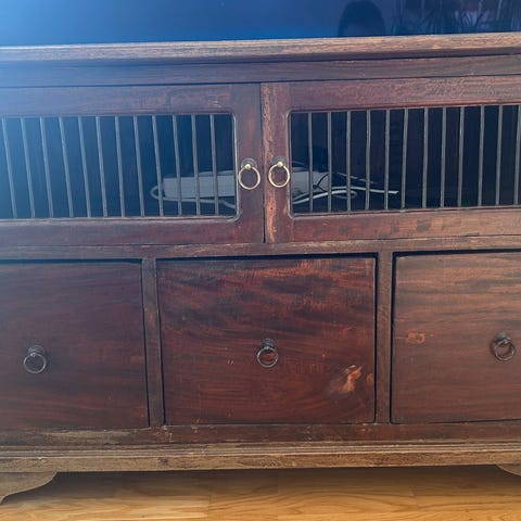 Mindre soffbord. Har använts som tv bänk i äldre/vintage stil.