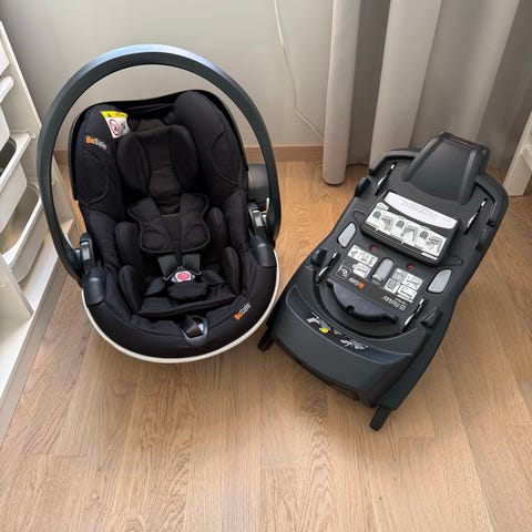 Enkelt och säkert babyskydd som tillverkades och köptes nytt 2021, okrockat. Babyskydd och bas som gör att man kan enkelt klicka i och ur bilen, men babyskyddet kan även monteras med bilens trepunktsbälte. Passar barn från nyfödd upp till ca ett år eller max 13 kg.