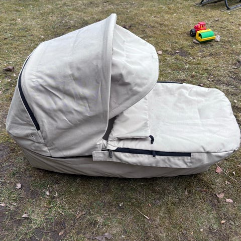 Baby Jogger liggdel i grå färg. Liggdel med sufflett och mjuk madrass för spädbarn. Passar till Baby Jogger elit vagnar. Addaptrar följer med.