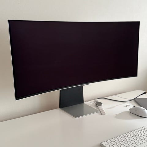 Samsung S34C950T bildskärm med 34 tum skärmstorlek. Skärmen är välvd ultrabred och kommer i vit färg med matchande stativ. På baksidan finns anslutningar enligt modellens standard, inklusive HDMI. Passar för användning till datorarbete, kontor eller hemmabruk där extra bred arbetsyta önskas.