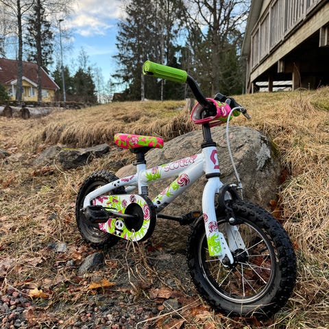 Säljer en Crescent 12-tums cykel i tufft blått och neon-grönt utförande. Perfekt som första cykel för den lilla cyklisten!