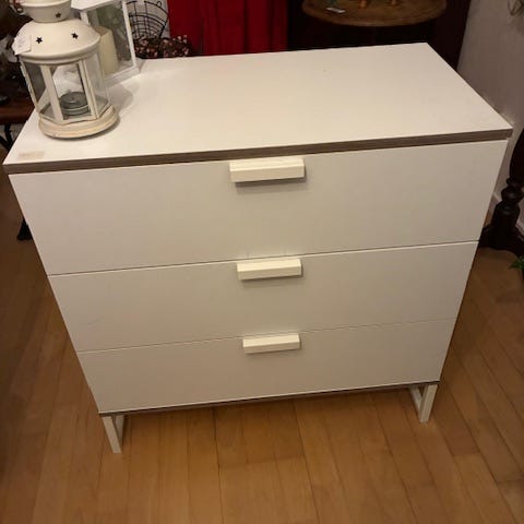 Vit byrå/skänk med två stycken dörrar och fyra lådor. Säljer pga flytt.