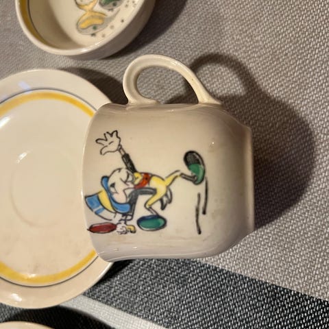 Säljer en espressokopp/mokkakopp med fat från Rörstrand, serie Diamant (P 555).