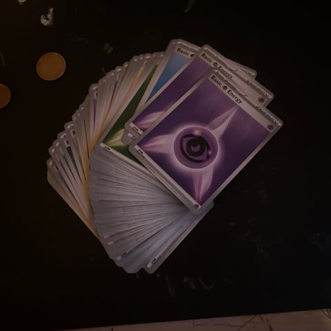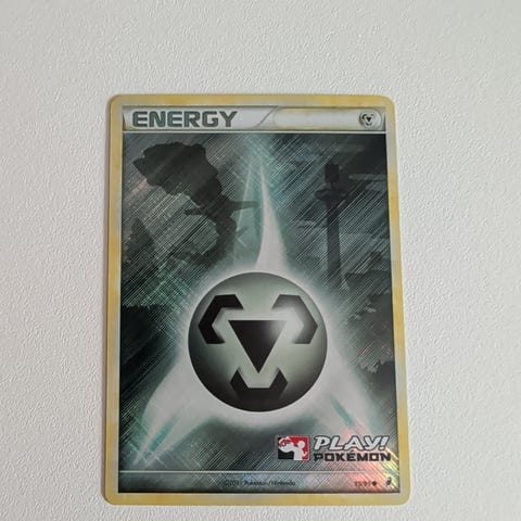 Pokémon energikort Water Energy i holo/foil-version. Standardstorlek för Pokémonkort, med gul ram och blå/vit illustration av vattenenergisymbolen. Passar till Pokémon Trading Card Game som energikort i lekar eller som samlarkort.