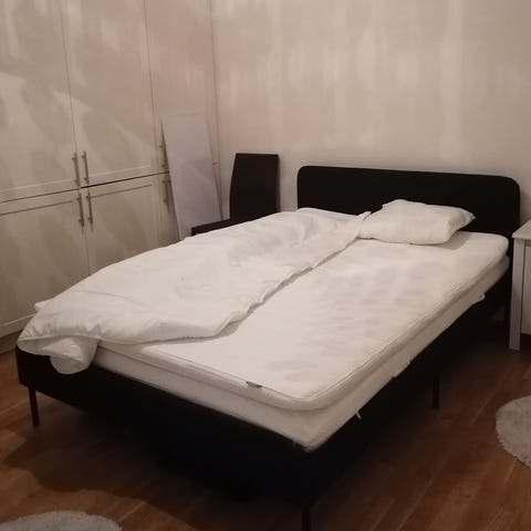 Sängen säljs utan bäddmadrass då det finns fläckar på den.