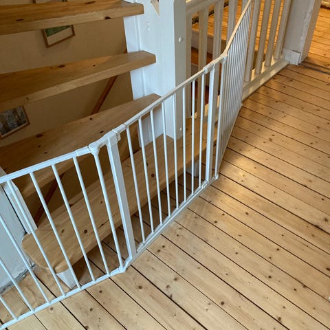 Säljer en BabyDan Flex L barngrind i bra skick. Stabil och flexibel grind som passar perfekt för bredare öppningar – eller som skydd runt t.ex. en kamin, vilket vi har använt den till.