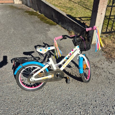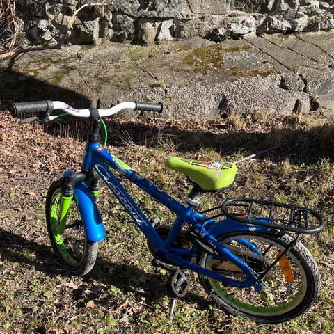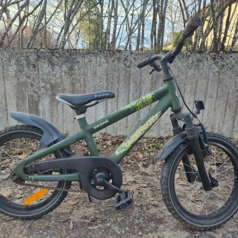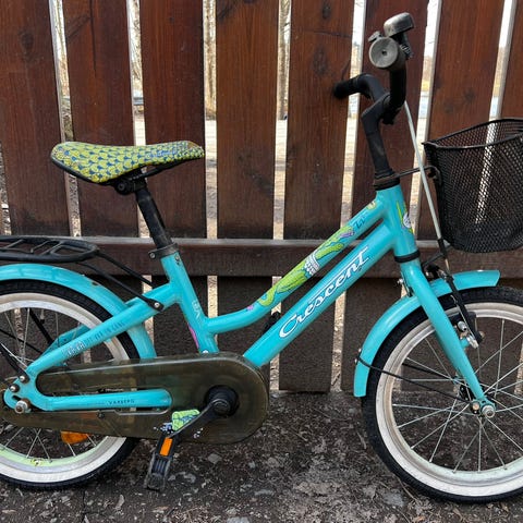 Crescent Svava barncykel med 16" hjul. Utrustad med korg fram och pakethållare bak. Skavmärken finns men överlag gott intryck.
