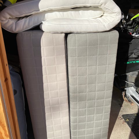 Bäddmadrass 105 cm bred, är lite smutsig och har nån fläck därav priset.