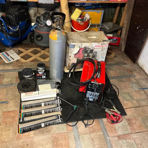 L. Erikssons Mek. Verkstad enfas svetstransformator med märkström upp till 180 A. Utrustad med hjul för förflyttning och fasta kablar anslutna på framsidan. Avsedd för svetsarbete där enfas transformator krävs. Typ- och effektdata framgår på typskylten på apparaten, inklusive anslutningsspänningar och strömstyrkor för olika lägen.