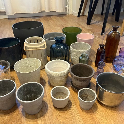 Två väldesignade förvaringslådor, -krukor. Helt i trä med metallram
