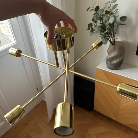 Golvlampa från ellos home, varsamt använd, i guld och mässing. Armaturen går att vinkla hur man vill.