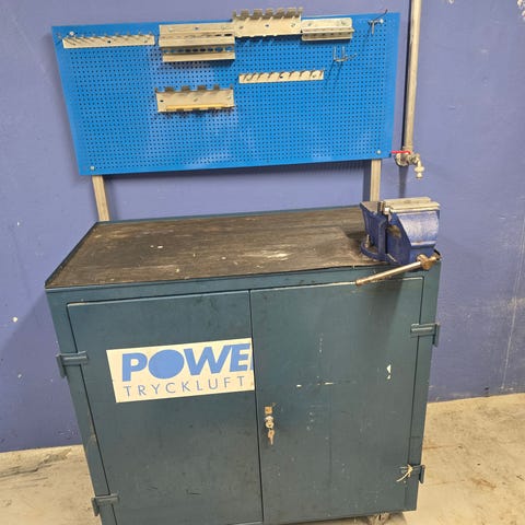 En bänk 0,5x1,0 m med hylla upptill och hyllplan under (är baksidan som syns på bild)