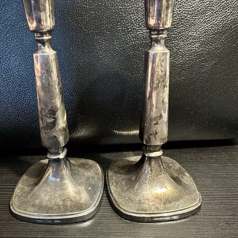 ljusstakar i metall i silverfärg. Klassisk, svarvad form med rund fot och smalare ljushållare upptill. Passar för vanliga kronljus och kan användas som bordsdekoration eller inredningsdetalj i olika rum.