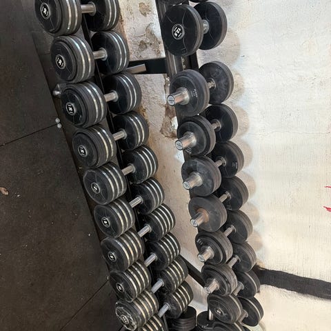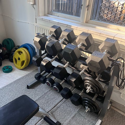 Hantelställ två våningar med plats för 10 par hantlar, robust och stabilt.