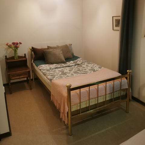 Bäddmadrassen har tvättbart avtagbart överdrag.