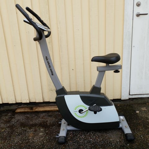 Abilica motionscykel i blå färg. Utrustad med digital display som visar träningsdata samt flera förinställda program. Justerbart säte och styre för att passa olika användare. Pedaler med remmar för stabil fotposition under träning. Lämplig för konditionsträning i hemmet.