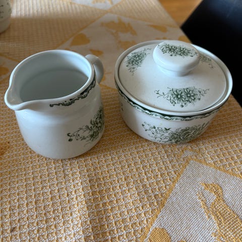 13st Rörstrand tekoppar med fat porslin gröna anna grön dekor