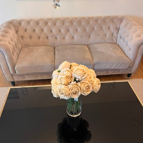 I väldigt bra skick. Fina och moderna soffor som är väldigt enkla att rengöra. Köptes för ca 25000 kr, säljs då de är för stora för nuvarande vardagsrum.