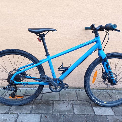 NOVA barncykel med 24" hjul i gul färg. Cykeln har lågt insteg, vilket underlättar på- och avstigning. Utrustad med vit framkorg, pakethållare bak, stöd, handbroms, ramlås samt belysning fram och bak. 3-växlar. Hämtas på Östermalm.