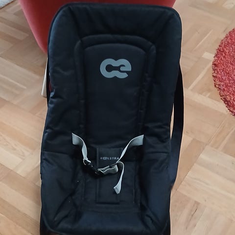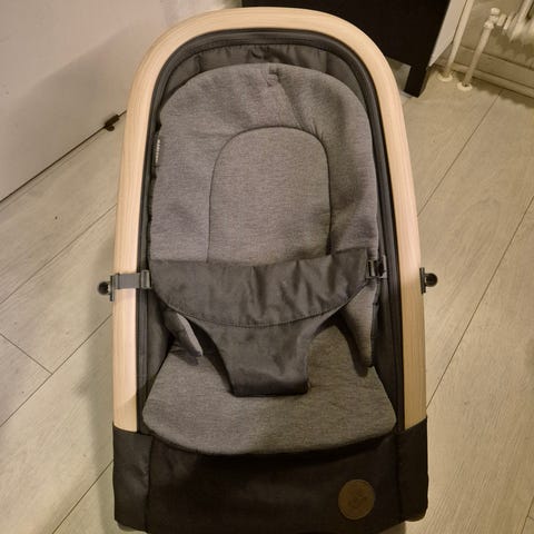 Babysittern har justerbart ryggstöd och säkerhetssele framtill.
