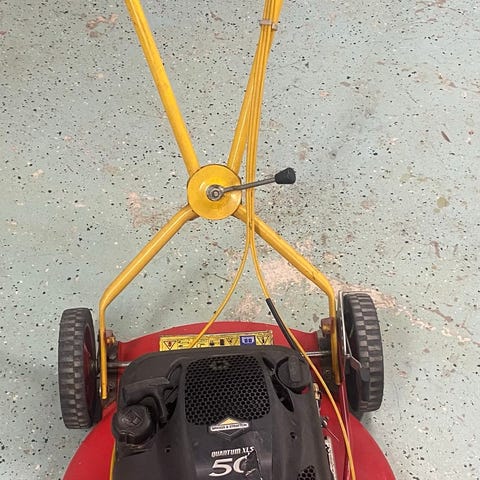 Motorn startar, driver på ett hjul, behöver antingen nya knivar till knivtallriken eller byta till vanlig kniv. Nytt luftfilter, oljan bytt förra sommaren, körd på aspen.