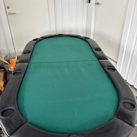Biljardbord med grön spelduk. Bordet har fyra ben och plastkanter runt spelplanen. På bilderna syns ett set biljardbollar, triangel, kö och vit boll som ingår. Passar för inomhusbruk i exempelvis barnrum, vardagsrum eller hobbyrum. Storleken är ett kompakt bord som lämpar sig för hemmabruk och mindre utrymmen.