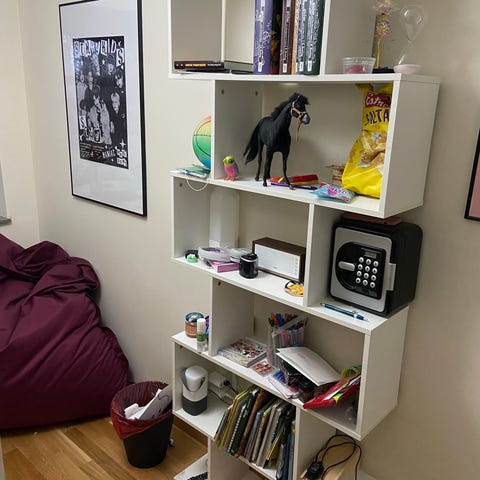 Den ena hylla har 3 stycken hyllplan, den andra har 2 hyllplan.