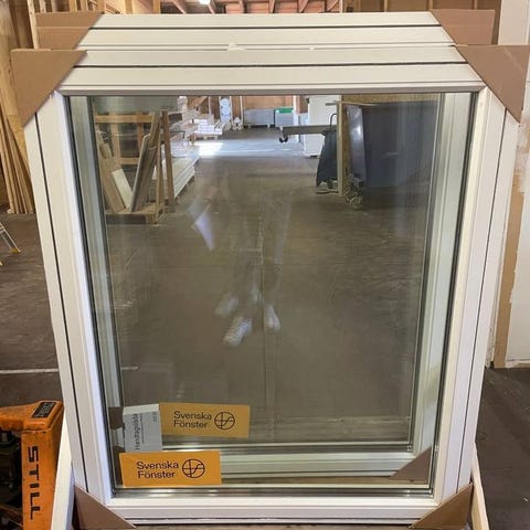 Fönster i modulmått 8x12 (Bredd 78 cm, höjd 118 cm). Ej öppningsbart.