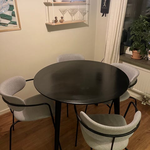 Hämtas i Häggvik. Pris kan förhandlas vid snabb affär. Endast bordet säljs, inte stolarna.