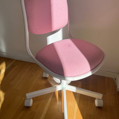Säljer en fin rosa ÖRFJÄLL skrivbordsstol i gott skick. Stolen är stabil, bekväm och perfekt för barnens skrivbord.