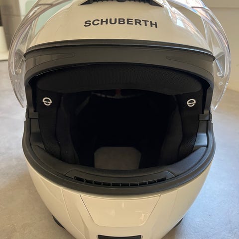 Nolan integralhjälm i vitt med klart visir med integrerat solvisir. Knappt använd.