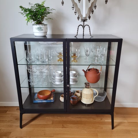 2 vitrinskåp valnötsfärg