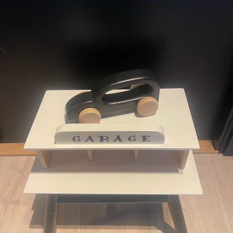Leksaksbilar i förvaringslåda på hjul