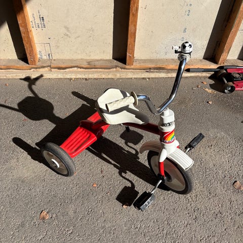 Barn trehjuling cykel 10" röd vit med korg