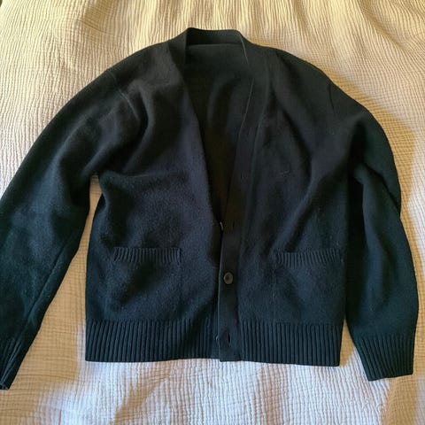 Uniqlo tröja för herr i storlek S. Rundhalsad stickad tröja i blå färg, tillverkad i merinoull. Passar som vardags- eller kontorsplagg och kan användas både som ensam tröja eller över en skjorta eller t-shirt.