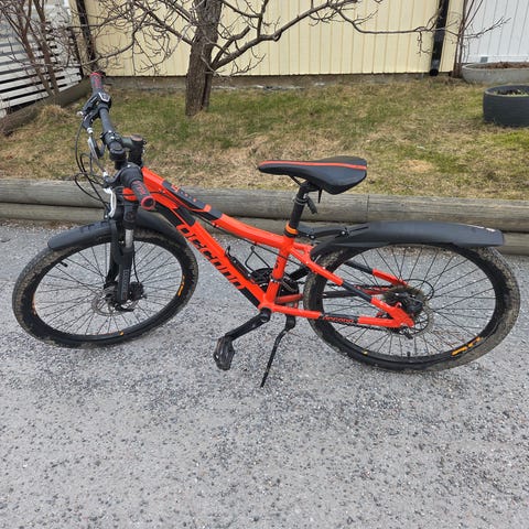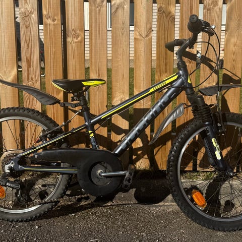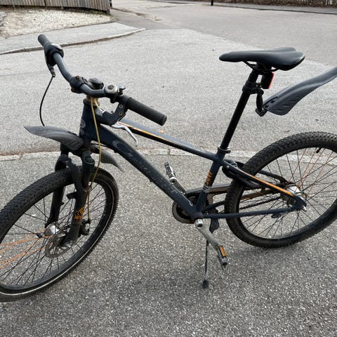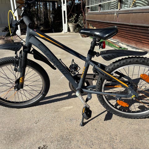 Crescent Trym Barncykel med 20" hjul i Grå/orange färg. Cykeln har handbromsar både bak och fram (Bakåttramp). 6 växlar med vridreglage på styret. Nytt däck bak.