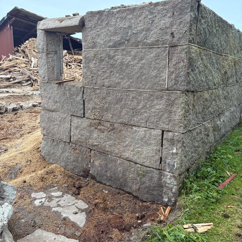 Granitblock som kan användas som dekoration i trädgården, exempelvis som krukor eller belysningsstolpar.