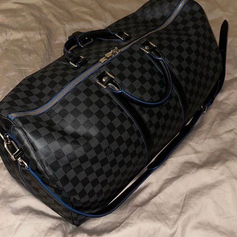 Jag säljer min Louis Vuitton Keepall Bandoulière 55 i det klassiska Damier Graphite-mönstret (svart/grå). En ikonisk och mångsidig weekendväska – perfekt för helgresor eller som kabinväska.