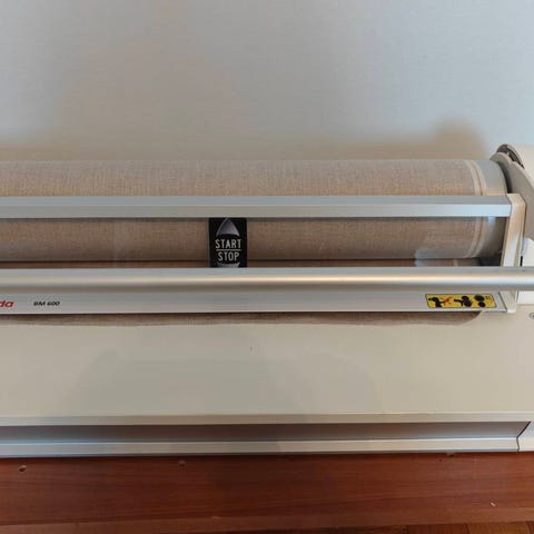 En svensk bänkmangel med 60 cm bred mangelyta och frontlastare som gör det lättare att mata in dukar och lakan. Dessutom är den utrustad med en fingerskyddande manövergrind som säkerhet för att undvika klämda fingrar