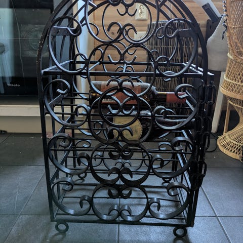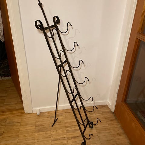 Säljer tidningsställ som är handgjord av gjutjärn.