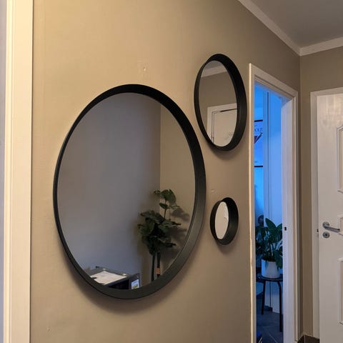 Slettvoll - runda speglar i svart ram. Mycket fint skick, samtliga 3 säljes.